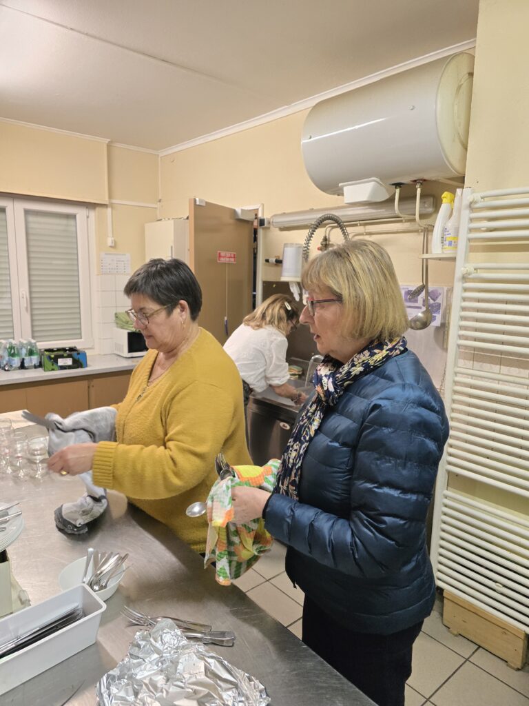 Les adhérents se retrouvent pour partager le verre de l’amitié et n’oublient pas de donner un coup de main en cuisine. Merci Sylvie, Marlène et Véronique !