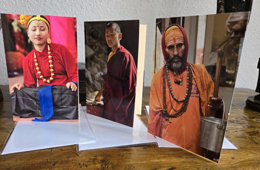 - acheter des cartes . Elles vous serviront à présenter des voeux quels qu’ils soient. Chaque photo est unique car elle a été prise par notre équipe lors de son séjour au Népal. Chaque carte est vendue (avec son enveloppe sous blister) à 2,50 €